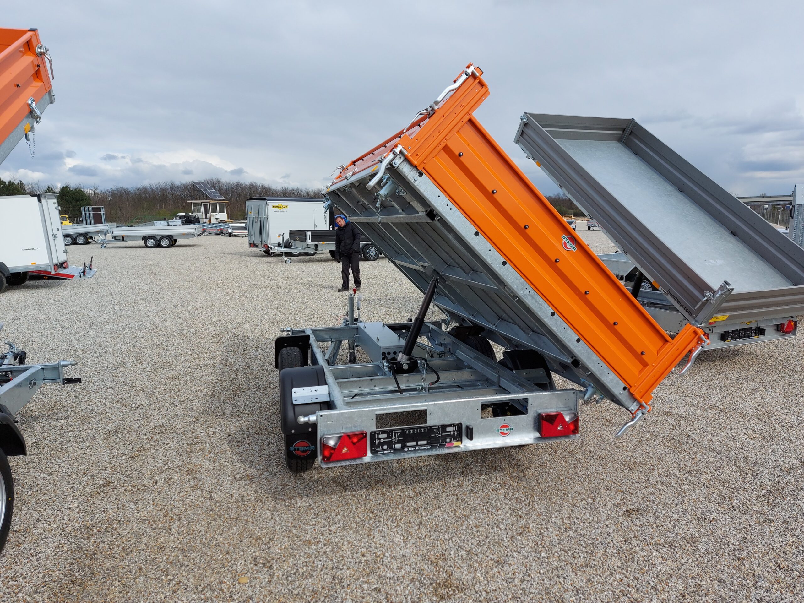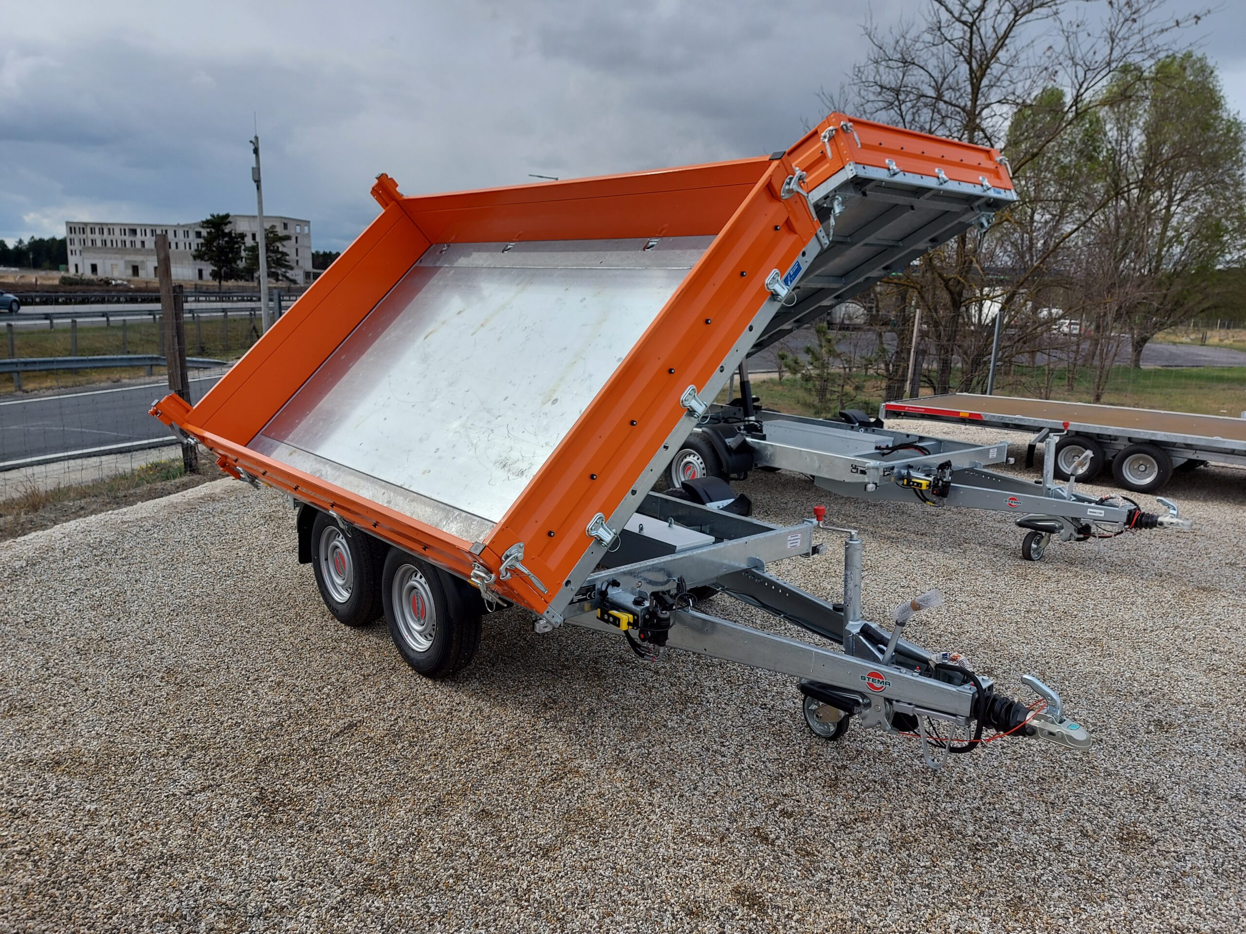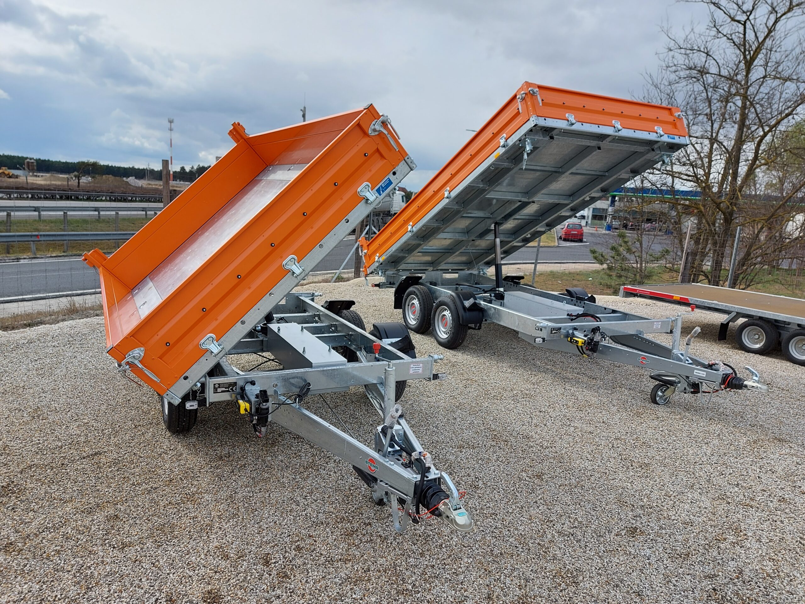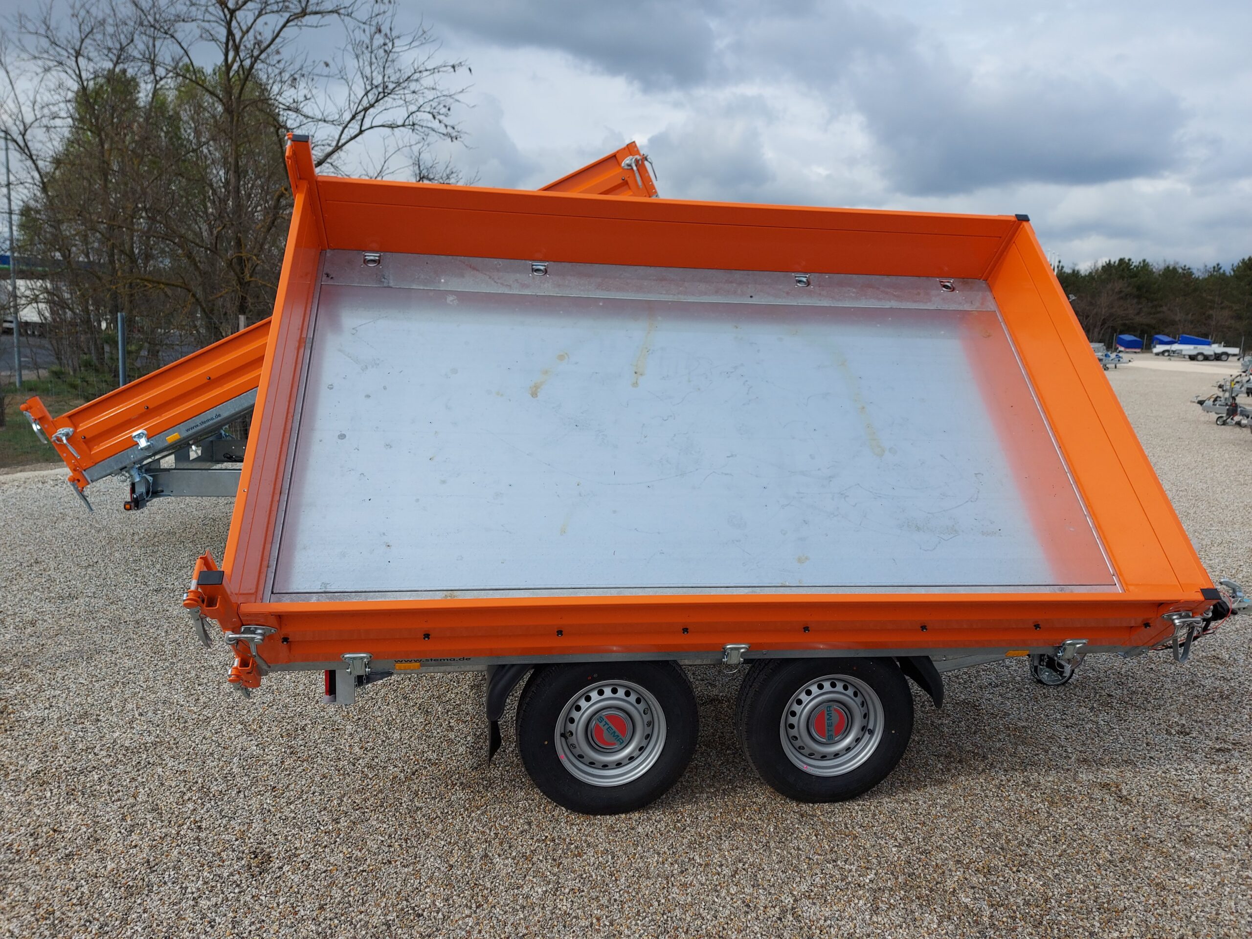 Elektrohidraulikusan 3 oldalra billenthető plató + vészhelyzeti kézipumpa. Masszív acél oldalfalak narancs színű szinterezéssel.