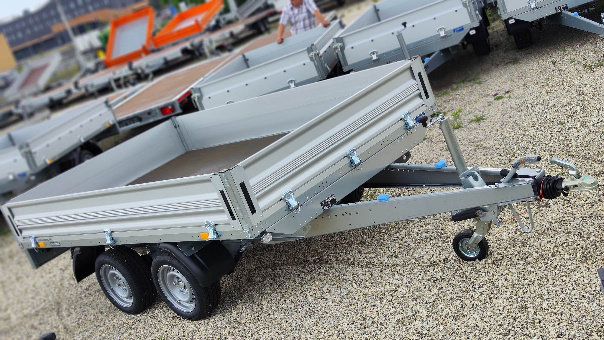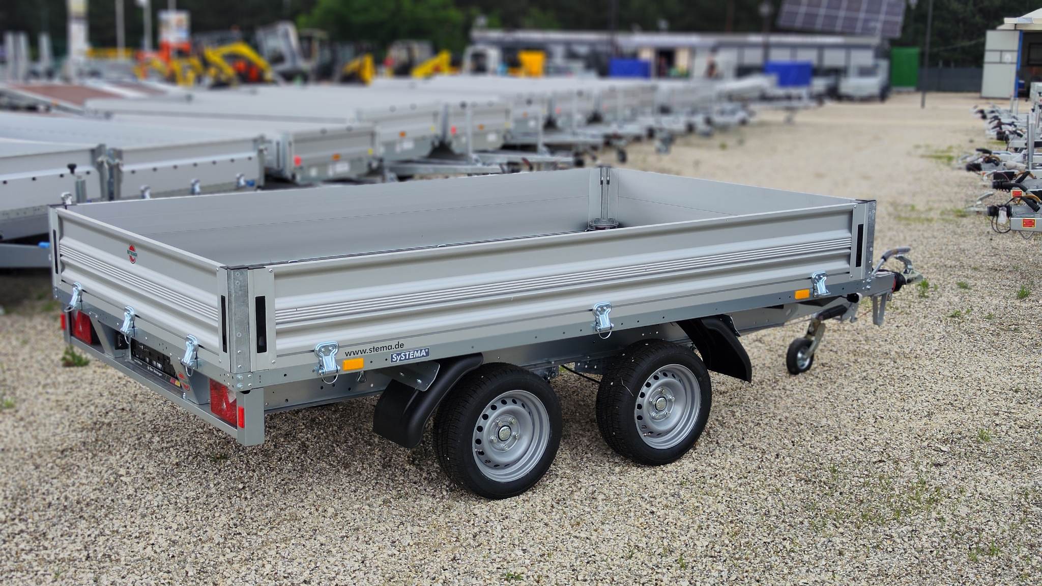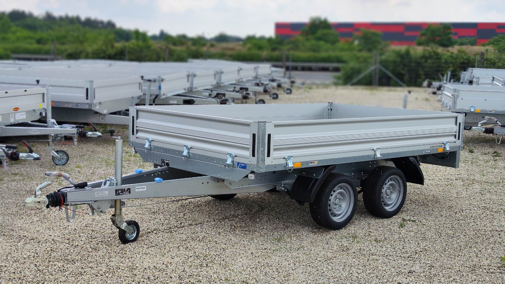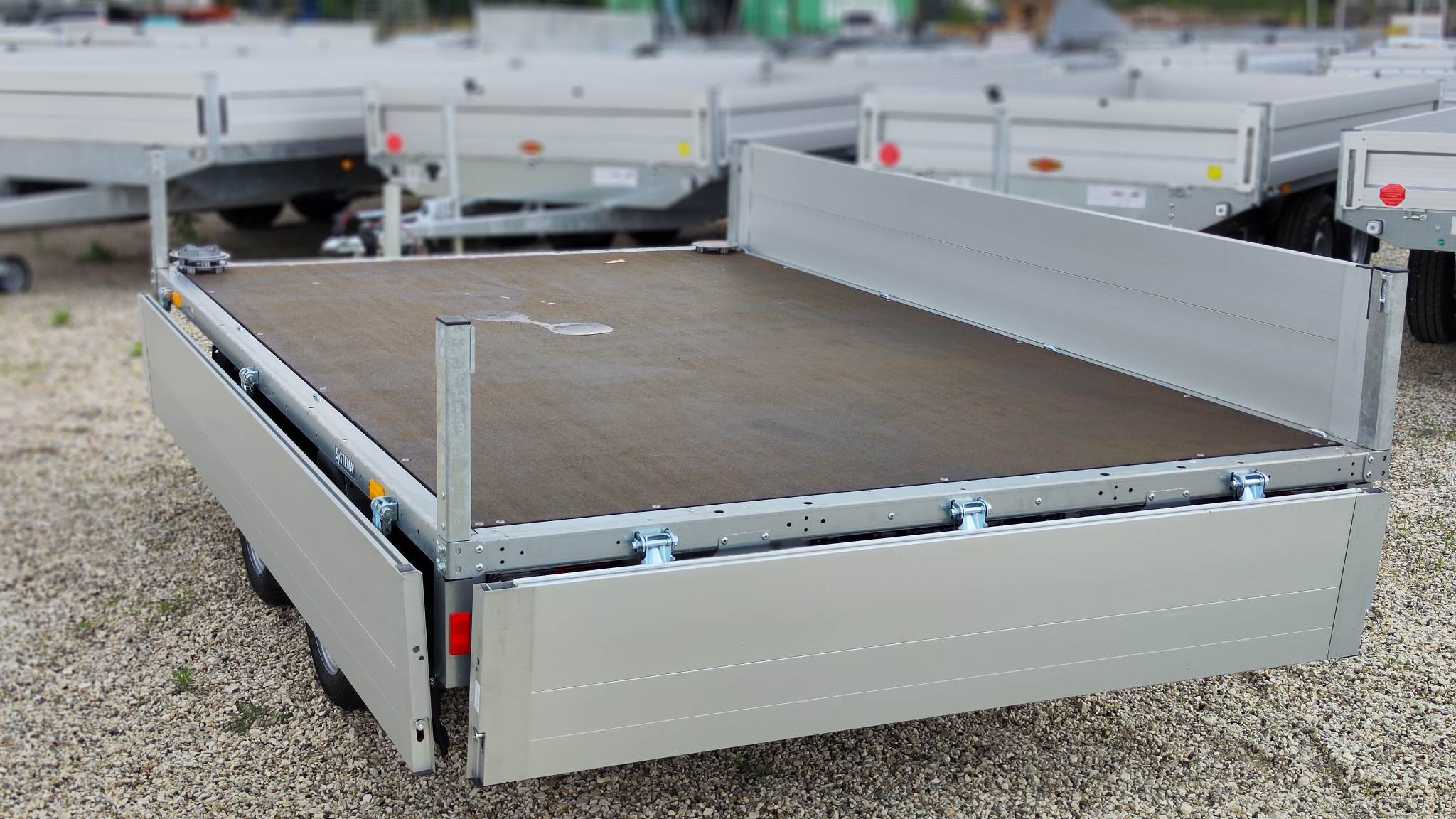 Stema SHP 27-30-18.2 típusú 2 tengelyes ráfutófékes áruszállító kivitel. A plató hasznos belső mérete 301x183cm, 2700kg össztömeg, masszív horganyzott acél alváz, plywood rétegelt lemez fa padozat, 35cm magas duplafalú eloxált alumínium oldalfal, minden oldalon nyitható, levehető, sarokvas leszerelhető. Lengéscsillapító szett tartozéka. Az alvázban rámpatartónak kialakított hely elő van készítve, utólag is bármikor beszerelhető. Stema minőségi pótkocsi Németországból. A nálunk vásárolt pótkocsikat igény esetén forgalomba helyezzük, nagy többségében 3-5 munkanap alatt, lebonyolítható interneten keresztül otthonról is, elegendő csak az átvételkor eljönni telephelyünkre. A képek illusztrációs jelleggel készültek. A pontos felszereltségről és kiegészítőkről vásárlás előtt kérjük tájékozódjon elérhetőségeink egyikén, amennyiben az a leírásból nem derül ki egyértelműen.