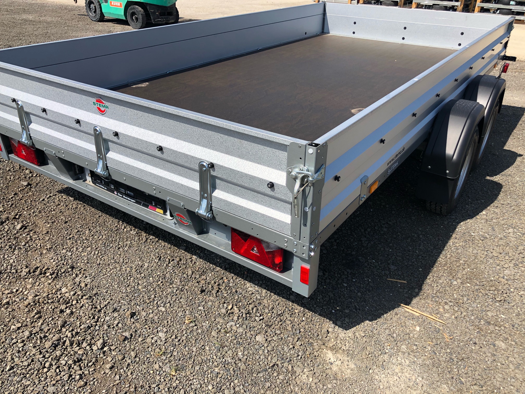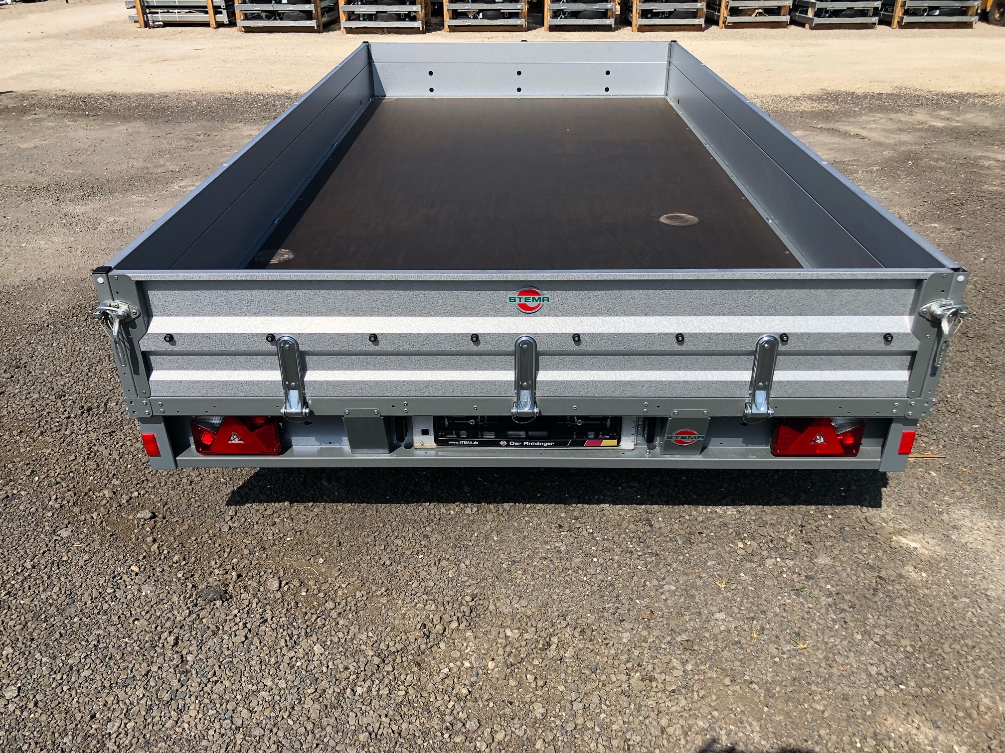 Stema STP 27-40-20.2 típusú 2 tengelyes ráfutófékes áruszállító kivitel. A plató hasznos belső mérete 401x203cm, 2700kg össztömeg, masszív horganyzott acél alváz, plywood rétegelt lemez fa padozat, 35cm magas duplafalú horganyzott acéllemez oldalfal, elől hátul nyitható és levehető, oldalsó falak leszerelhetők, teljesen sík platóra bontható és platós kivitelként is használható, a sárvédők a vázhoz vannak rögzítve. Lengéscsillapító szett tartozéka. Az alvázban rámpatartónak kialakított hely elő van készítve, utólag is bármikor beszerelhető. Stema minőségi pótkocsi Németországból. A nálunk vásárolt pótkocsikat igény esetén forgalomba helyezzük, nagy többségében 3-5 munkanap alatt, lebonyolítható interneten keresztül otthonról is, elegendő csak az átvételkor eljönni telephelyünkre. A képek illusztrációs jelleggel készültek. A pontos felszereltségről és kiegészítőkről vásárlás előtt kérjük tájékozódjon elérhetőségeink egyikén, amennyiben az a leírásból nem derül ki egyértelműen.