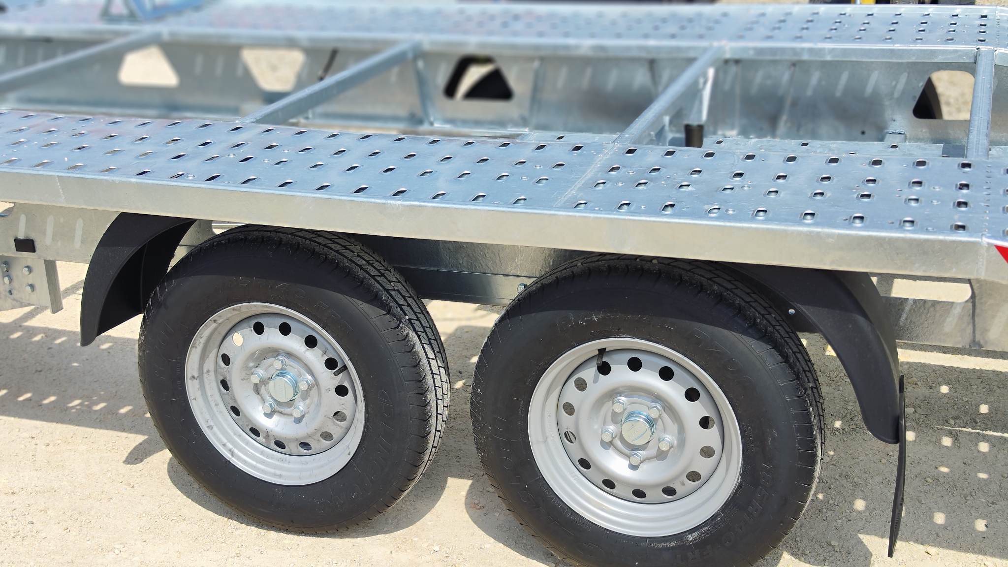 Temared Carplus 4520 S típusú 2 tengelyes hátul letört platós autószállító. Tüzihorganyzott acél váz és autószállító felépítmény, 1 pár acélrámpa, kézi csörlő, 2db kerékütköző. A plató hátsó része letört kivitel a feljárás kedvezőbb szögének érdekében. 14C kerekek, 13 pólusú elektromos csatlakozó. A nálunk vásárolt pótkocsikat igény esetén forgalomba helyezzük, nagy többségében 3-5 munkanap alatt, lebonyolítható interneten keresztül otthonról is, elegendő csak az átvételkor eljönni telephelyünkre. A képek illusztrációs jelleggel készültek. A pontos felszereltségről és kiegészítőkről vásárlás előtt kérjük tájékozódjon elérhetőségeink egyikén, amennyiben az a leírásból nem derül ki egyértelműen.